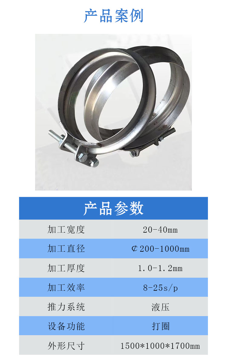 本文介紹的設(shè)備是用于風(fēng)管抱箍產(chǎn)品加工,首先調(diào)直數(shù)控長(zhǎng)度調(diào)節(jié),突破傳統(tǒng)出槍定位長(zhǎng)度的缺點(diǎn),連續(xù)裁切運(yùn)行,然后通過(guò)折彎頭的折角,配合送線的工作,把材料折彎成圓的形狀,采用電機(jī)送料,具有送料不停頓,連續(xù)性凸輪剪切,高準(zhǔn)度加工,生產(chǎn)速度快。(公司根據(jù)客戶需求,為客戶量身定制適合的設(shè)備,歡迎新老客戶咨詢了解)
