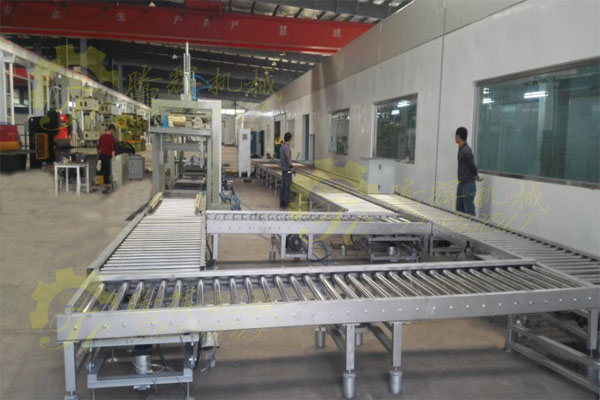 此套設(shè)備自動化程度高、操作簡單、輕松、產(chǎn)品質(zhì)量保證、并且安全、節(jié)能、減輕勞動強(qiáng)度。這一整套設(shè)備主要以中間兩臺包邊機(jī)為主,其他輸送線、吊送機(jī)和翻轉(zhuǎn)機(jī)為輔所組成的。這套生產(chǎn)設(shè)備,無論是機(jī)器的設(shè)計,還是生產(chǎn)現(xiàn)場的場地布置都是有著嚴(yán)格的要求的。